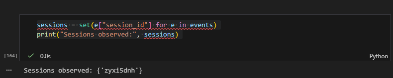 The following is a screenshot from the Jupyter notebook, showing the telemetry analysis of all events generated during the attack session.
