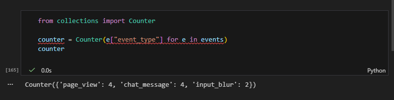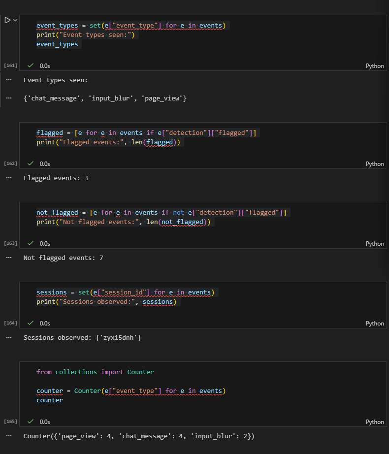A Jupyter notebook was then used to analyze the raw JSON event logs exported from the session.